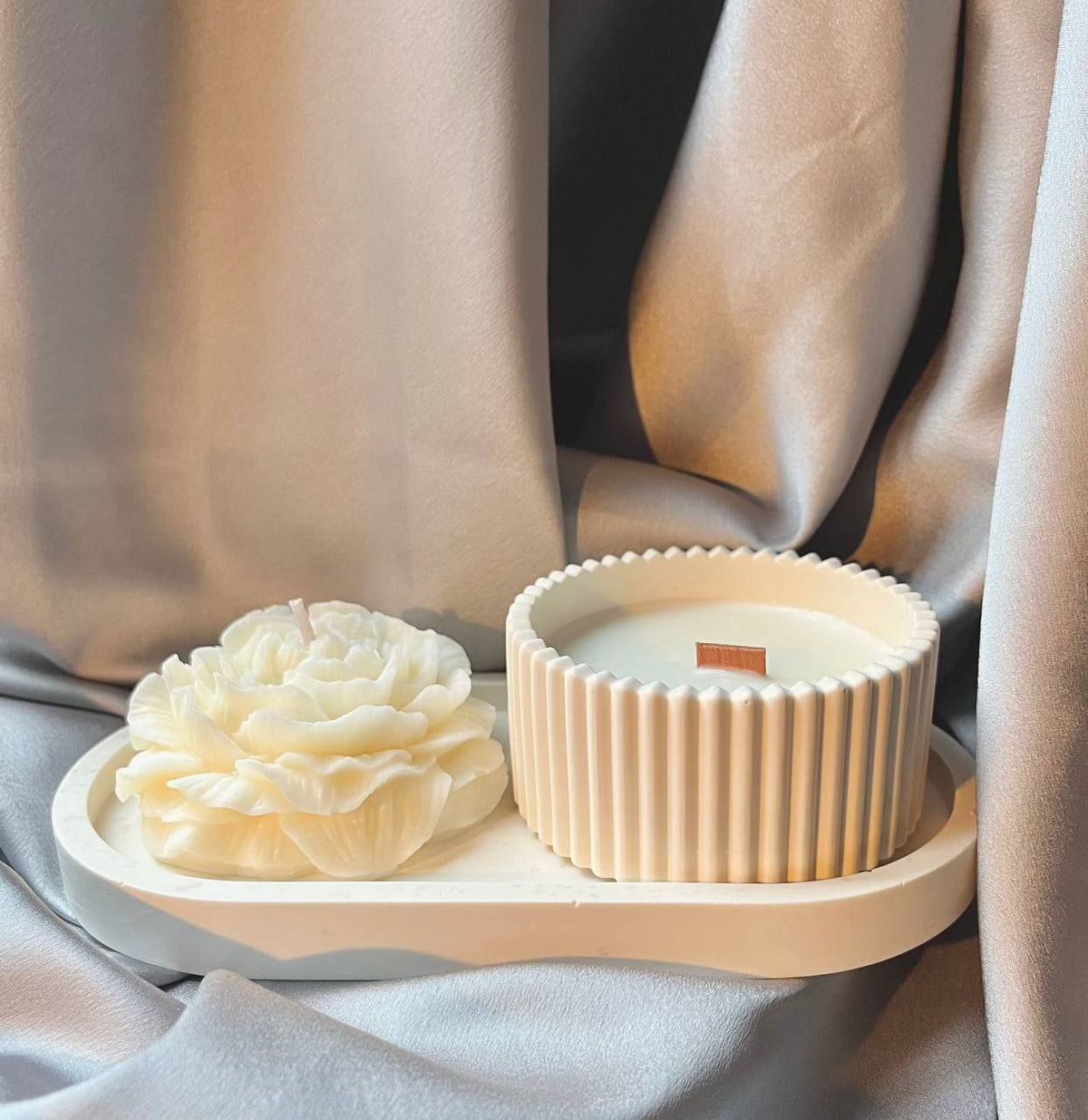 ⚪ Both candles are presented on a decorative gypsum plate — a stylish piece of home décor