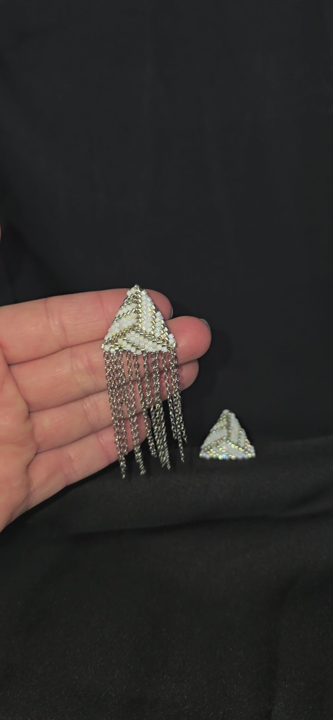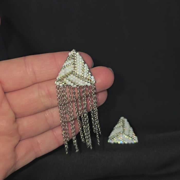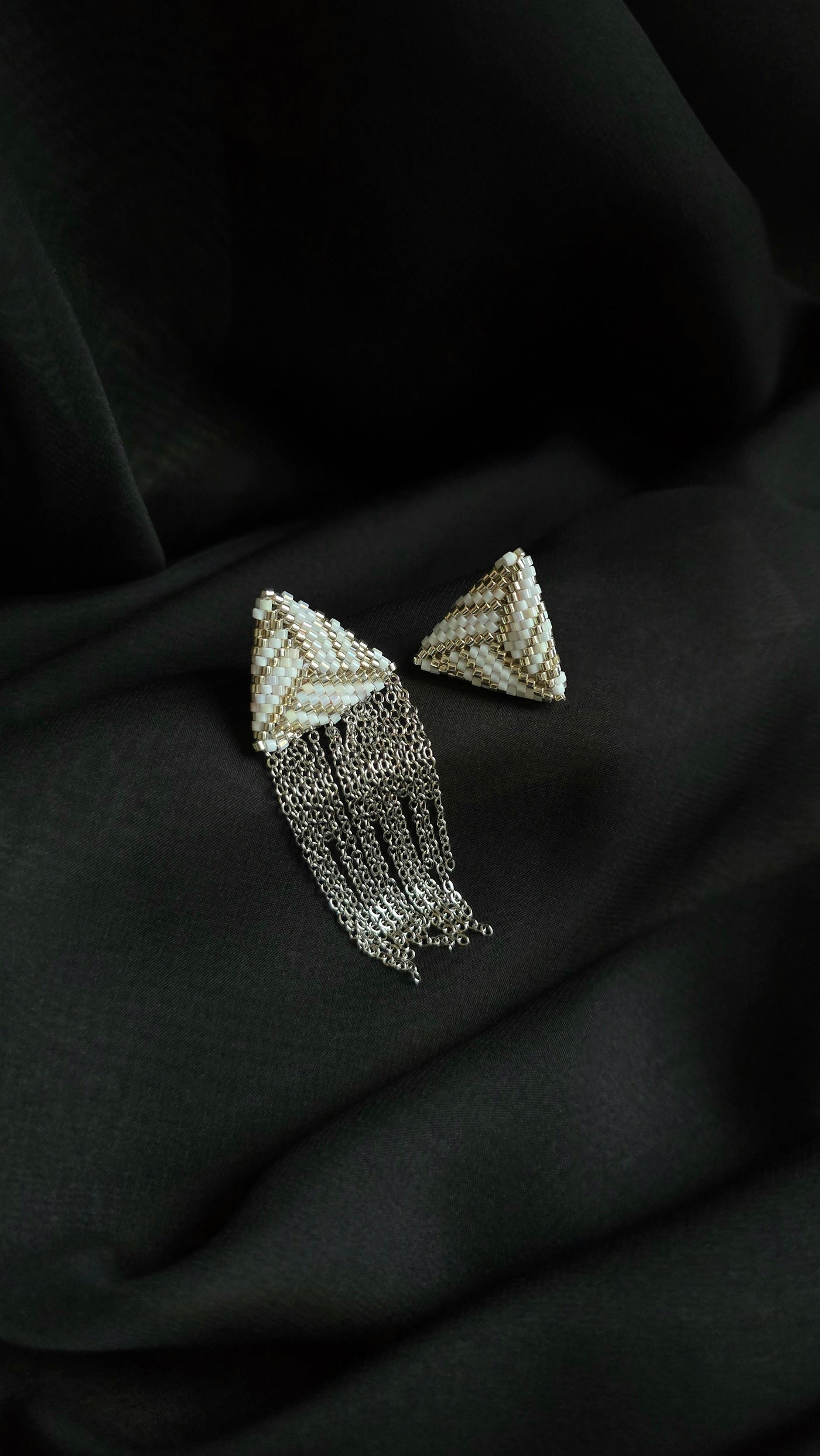 Asymmetrical earrings, handcrafted from fine seed beads with brass findings.