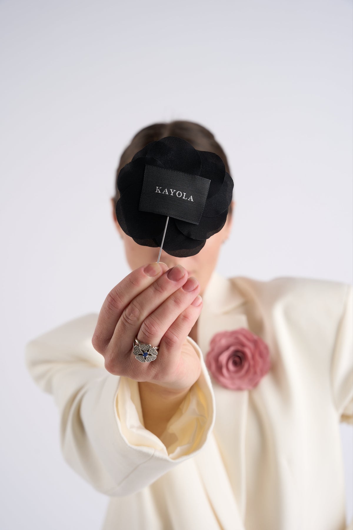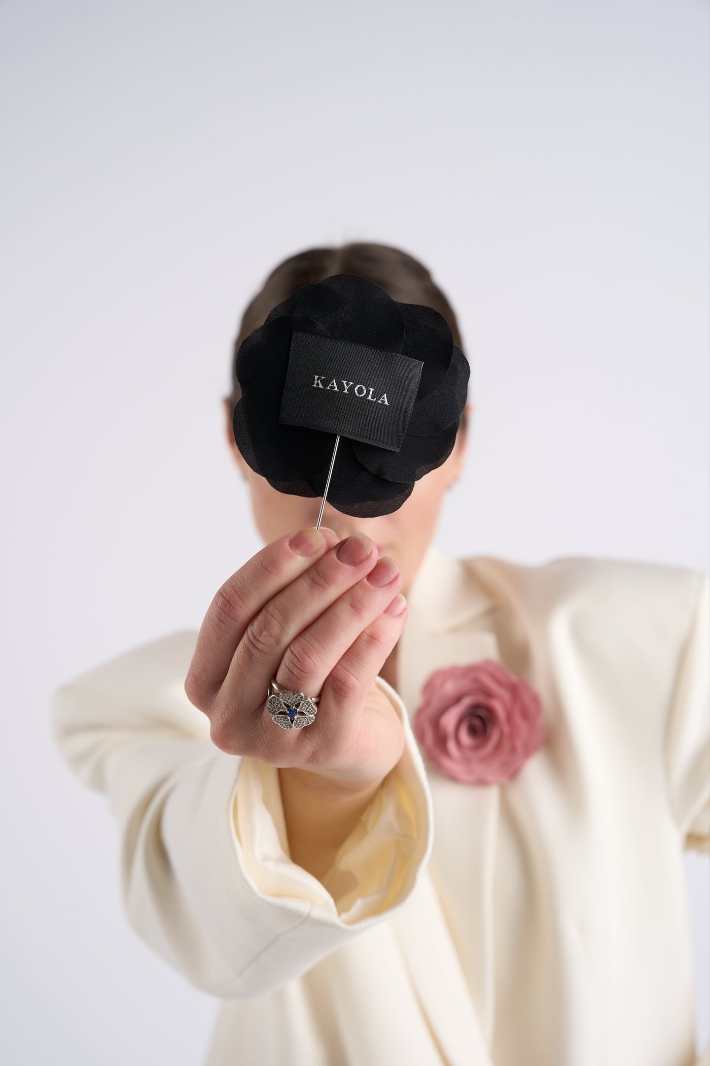 A handcrafted miniature brooch with a voluminous floral design. An elegant accessory that will become a stylish accent in your look.